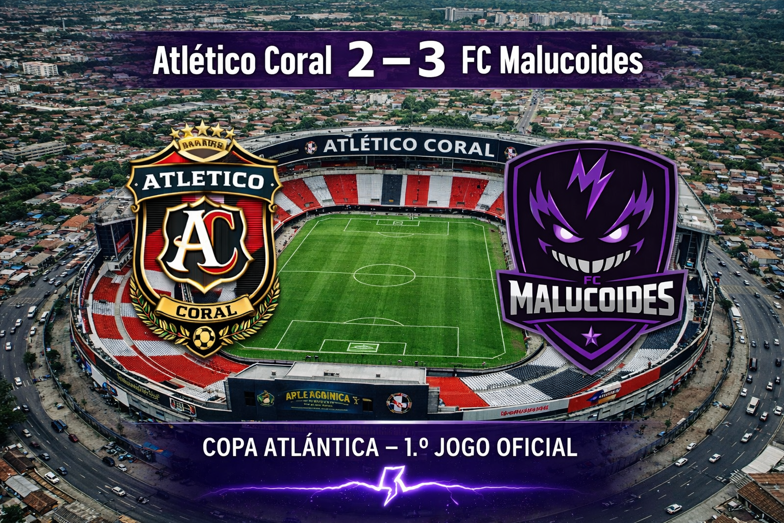 O FC Malucoides venceu o @Atlético Coral por 3-2, fora de casa, na Arena Coral, no primeiro jogo oficial da história do clube, a contar para a Copa Atlântica.
