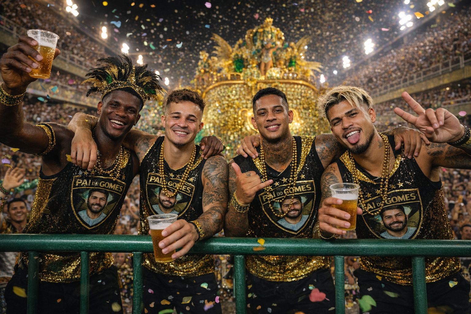 O Pai do Gomes mostrou que sabe brilhar em qualquer palco. Depois do espetáculo dentro das quatro linhas, o quarteto também marcou presença no maior show da Terra, levando a energia do futebol para a Sapucaí.
