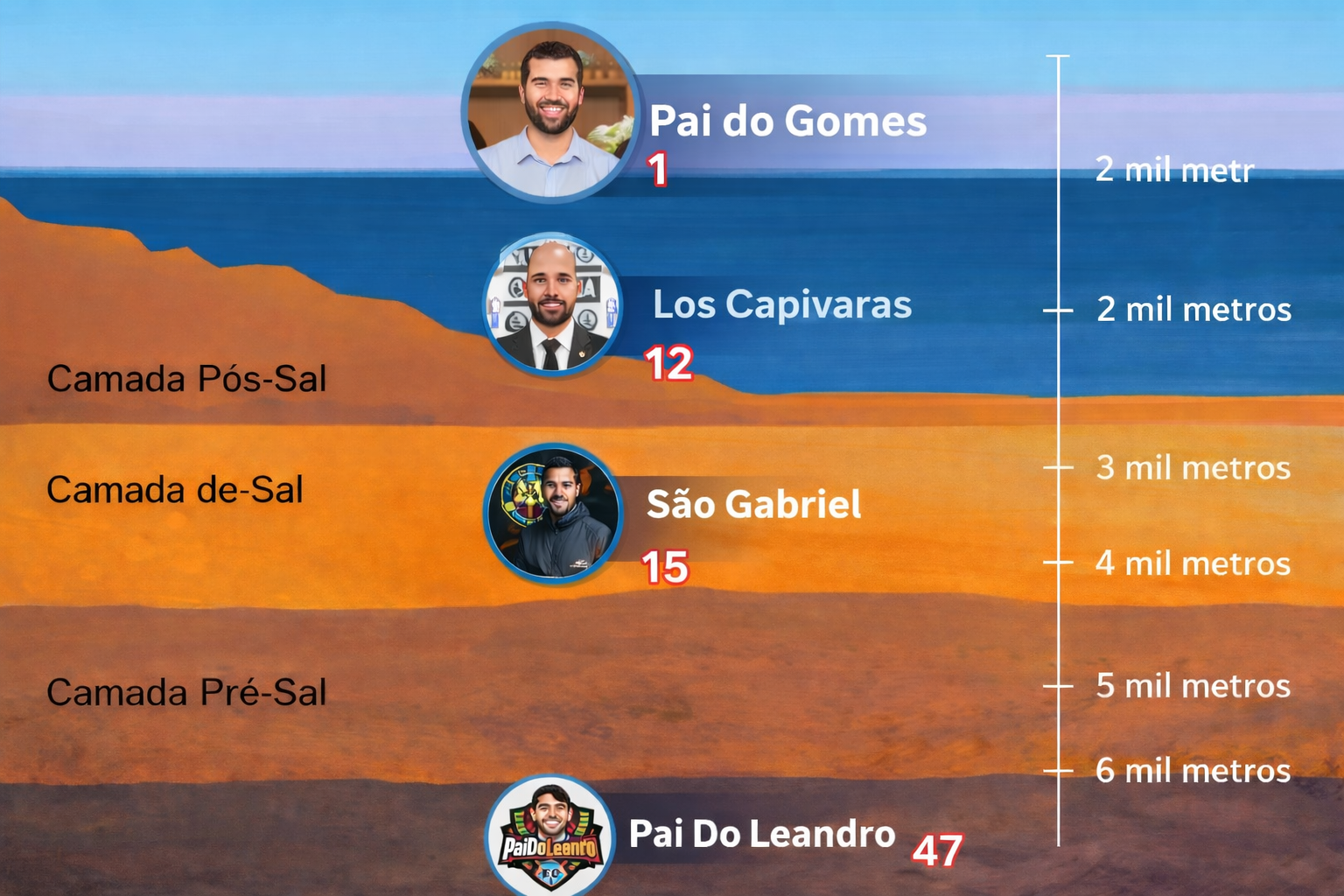 E não para por aí — Willyan (@Los Capivaras) e Diogando (@C.A. São Gabriel) também figuram como fregueses secundários, vítimas recorrentes da camisa pesada do Pai do Gomes.