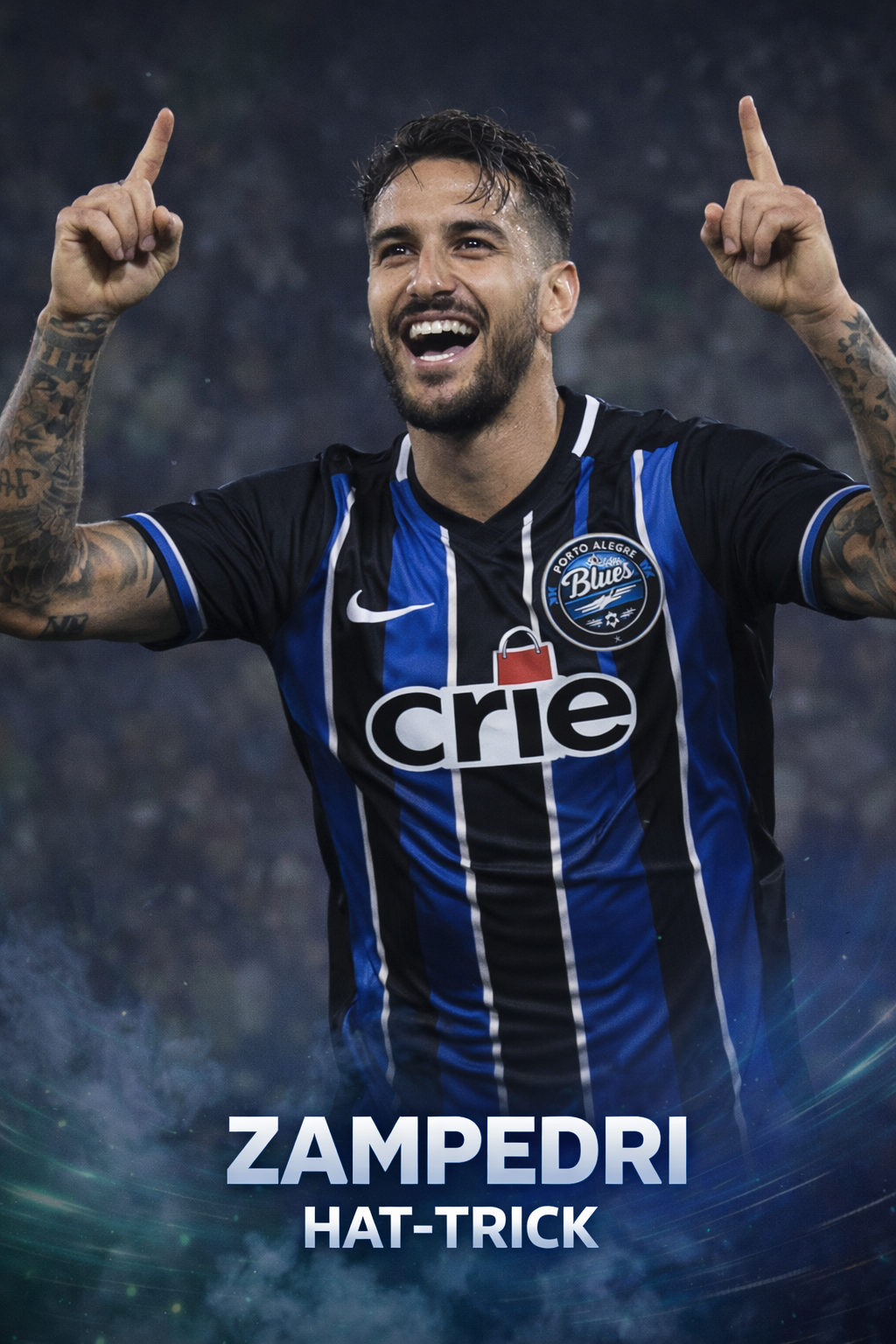 O ataque do Blues funcionou com grande intensidade e eficiência. Zampedri balançou as redes duas vezes, enquanto Rwan Cruz, Lucas Ronier, Luquinhas (2) e Gabriel Mec completaram a goleada.