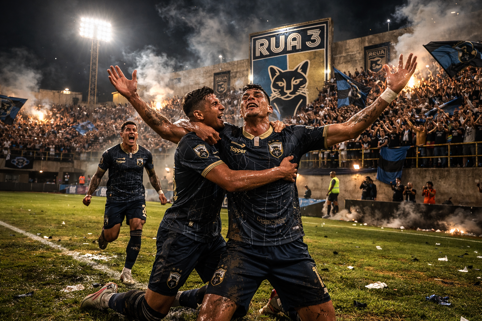 O azul escuro guarda a noite, o esforço invisível, o jogo que continua mesmo quando ninguém vê.