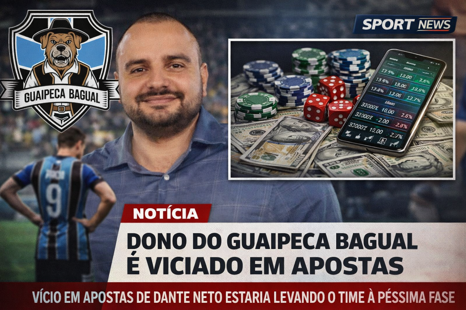 O clima é cada vez mais tenso nos corredores do Guaipeca Bagual 🐶⚽. Uma polêmica explosiva veio à tona envolvendo o dono do clube, Dante Neto, que estaria enfrentando um sério vício em apostas 🎲💸.