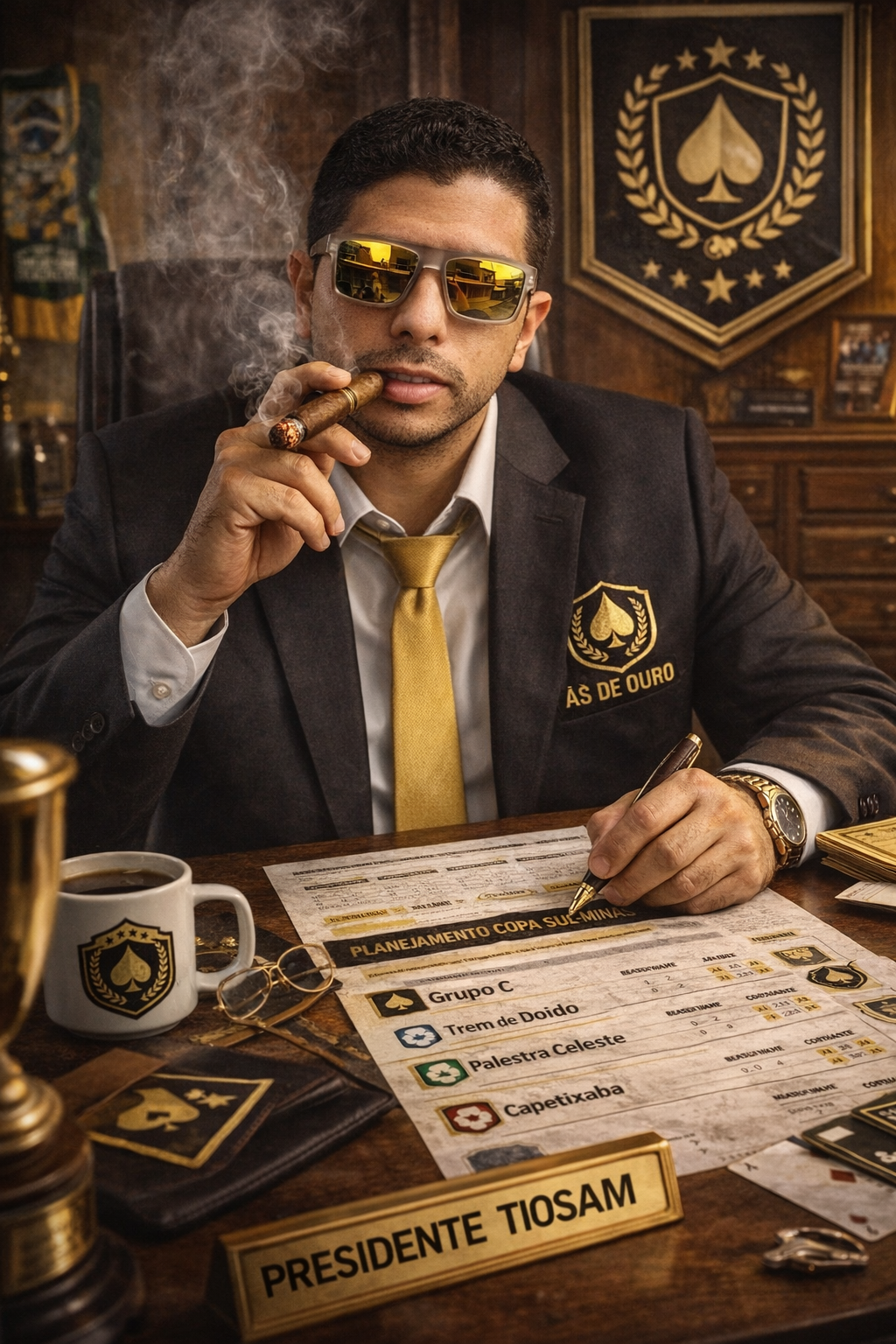 Presidente Tiosam no escritório definindo o planejamento para a fase de grupos da copa sul minas
