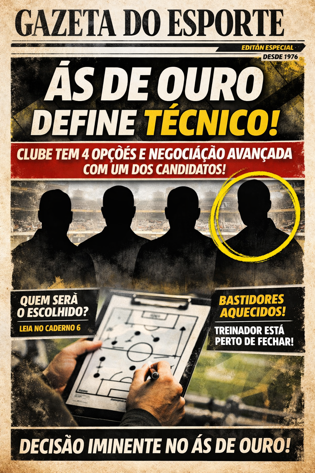 O Ás de Ouro vive dias decisivos fora das quatro linhas. A diretoria trabalha com cautela e estratégia na escolha do novo treinador, mantendo quatro nomes no radar. Segundo fontes internas, as conversas com um dos candidatos já estão em estágio avançado, o que indica que a definição pode acontecer a qualquer momento.