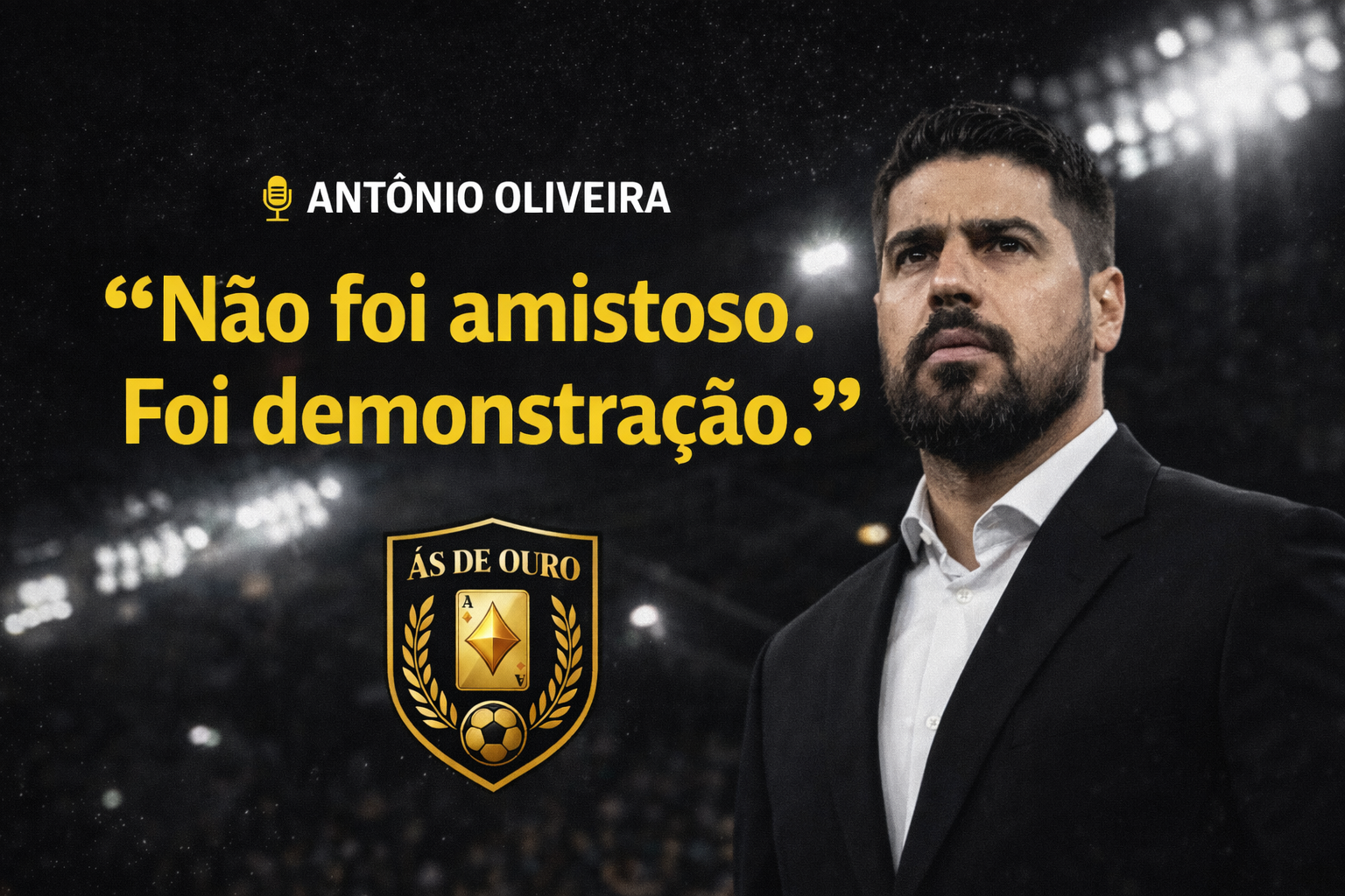 O Ás de Ouro anuncia a contratação do técnico António Oliveira como novo comandante da equipe. Português, com passagens marcantes pelo Corinthians e pelo Cuiabá, o treinador chega com bagagem, liderança e um modelo de jogo competitivo para encarar os desafios da temporada.