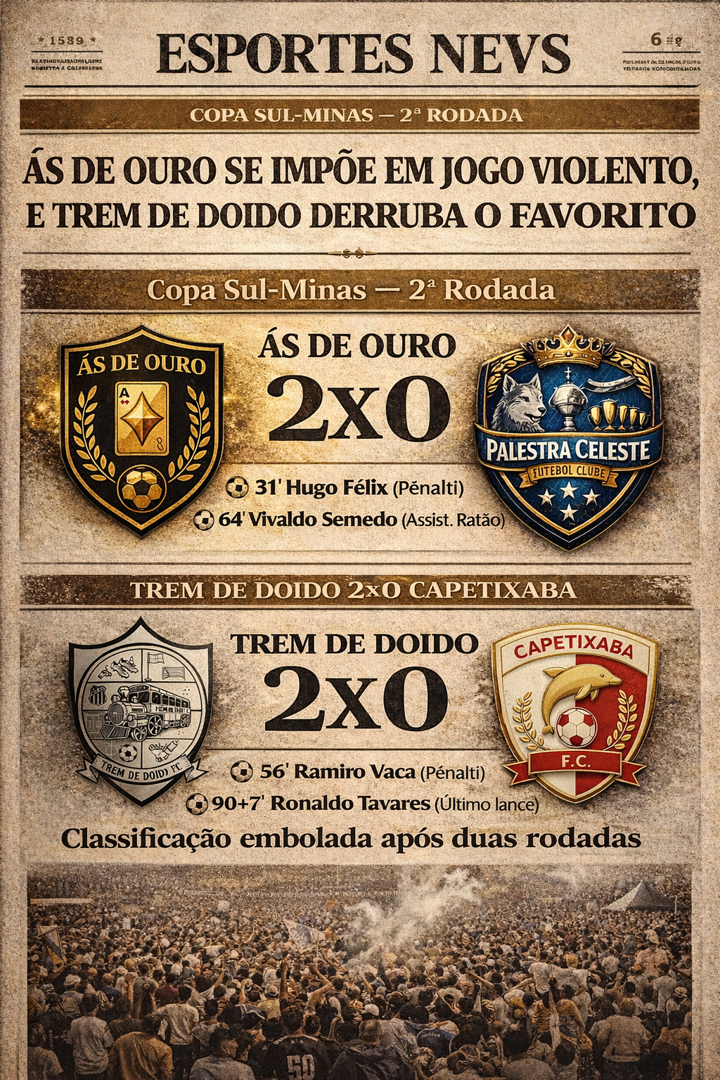 O revés acabou transformando o que era um jogo decisivo em uma eliminação traumática, deixando no ar a sensação de que a campanha poderia ter tido um desfecho diferente. Agora, resta ao Ás de Ouro disputar a última rodada tentando evitar um encerramento ainda mais doloroso na tabela do Grupo C. 🃏⚽