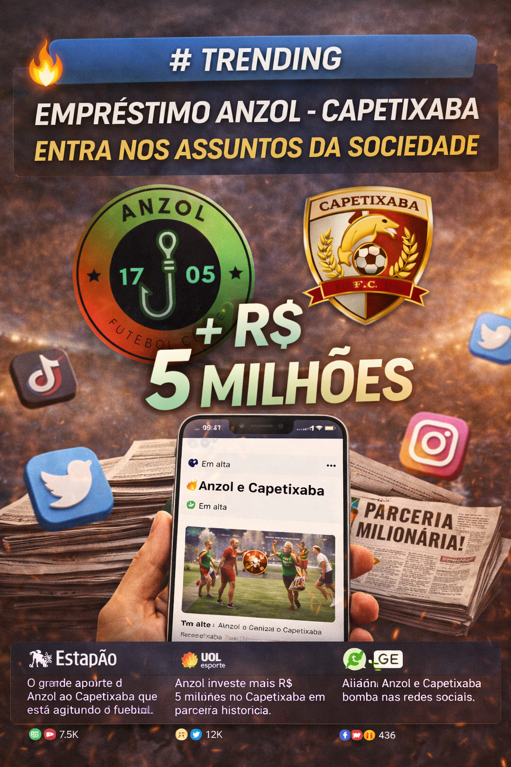 parceria entre Anzol e Capetixaba acaba de ganhar mais um capítulo importante. O clube parceiro já havia destinado 7 milhões ao projeto e agora amplia o apoio com mais 5 milhões para a temporada.