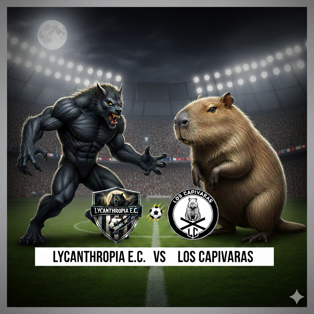 Hoje é o dia! O Los Capivaras entra em campo para o amistoso oficial de abertura da LPFM. É o nosso primeiro grande teste, o momento de ver a força da nossa alcateia contra o time do Lycanthropia do presidente Welson.
