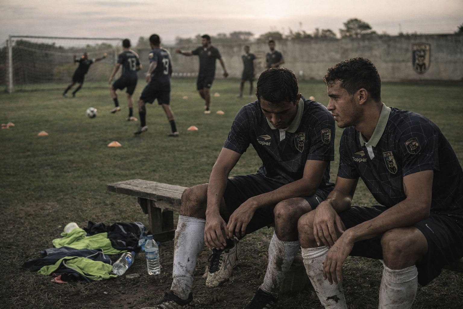 O azul escuro guarda a noite, o esforço invisível, o jogo que continua mesmo quando ninguém vê.